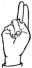 На ћирилици написано МАРИЈА ЛУДОШКИ састоји се из 13 слова [?]. Исписано ћириличном једноручном азбуком за глувонеме: